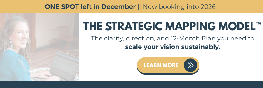 The evidence-based, data-driven Strategic Mapping Model™ is a decision-accelerator & strategic planning process that transforms your vision, ideas, goals, gaps, and growth opportunities into a clear, actionable custom roadmap for the year ahead to scale your business model, while honoring your capacity.